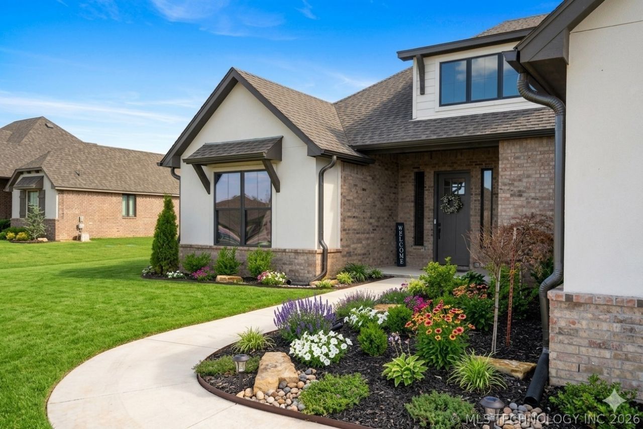 Nearly new 2024-built home situated on a quiet half-acre lot on the outskirts of Broken Arrow. This 3-bedroom, 2-bath home features luxury vinyl flooring and white quartz countertops throughout, an induction cooktop, and custom window shutters. The primary suite is highlighted by a spacious walk-in closet with 12-foot ceilings, while the 3-car garage offers generous storage and flexibility. Outdoor living shines with an oversized covered patio featuring a built-in fireplace, ideal for relaxing or entertaining - plus plenty of room to add your own shop, pool, or additional outdoor space. Thoughtfully designed with modern finishes, a functional layout, and a quiet setting, this home offers space, style, and convenience in one exceptional package!